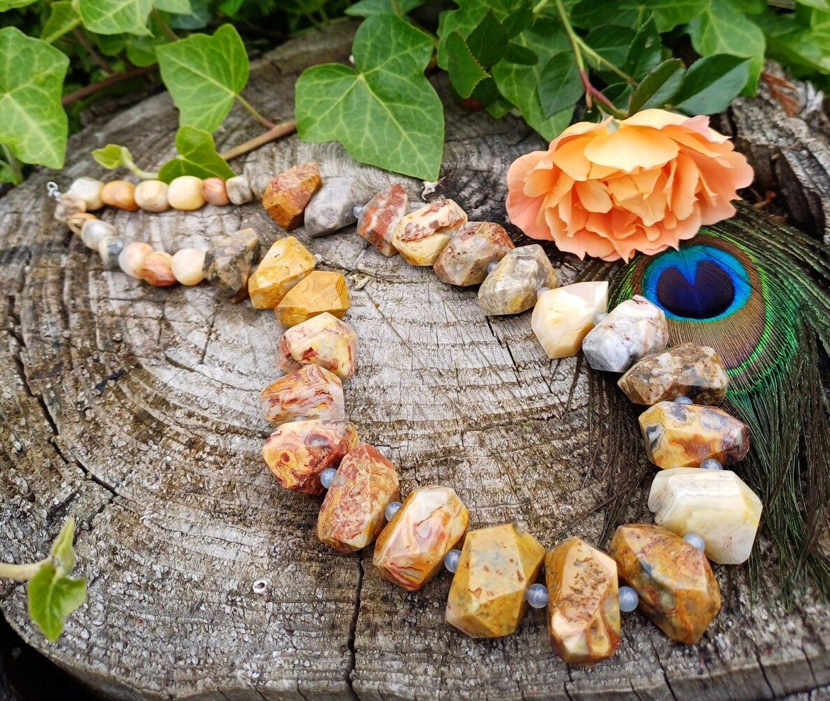 Masivní náhrdelník z minerálu krajkový achát (lace crazy agate) Austrálie