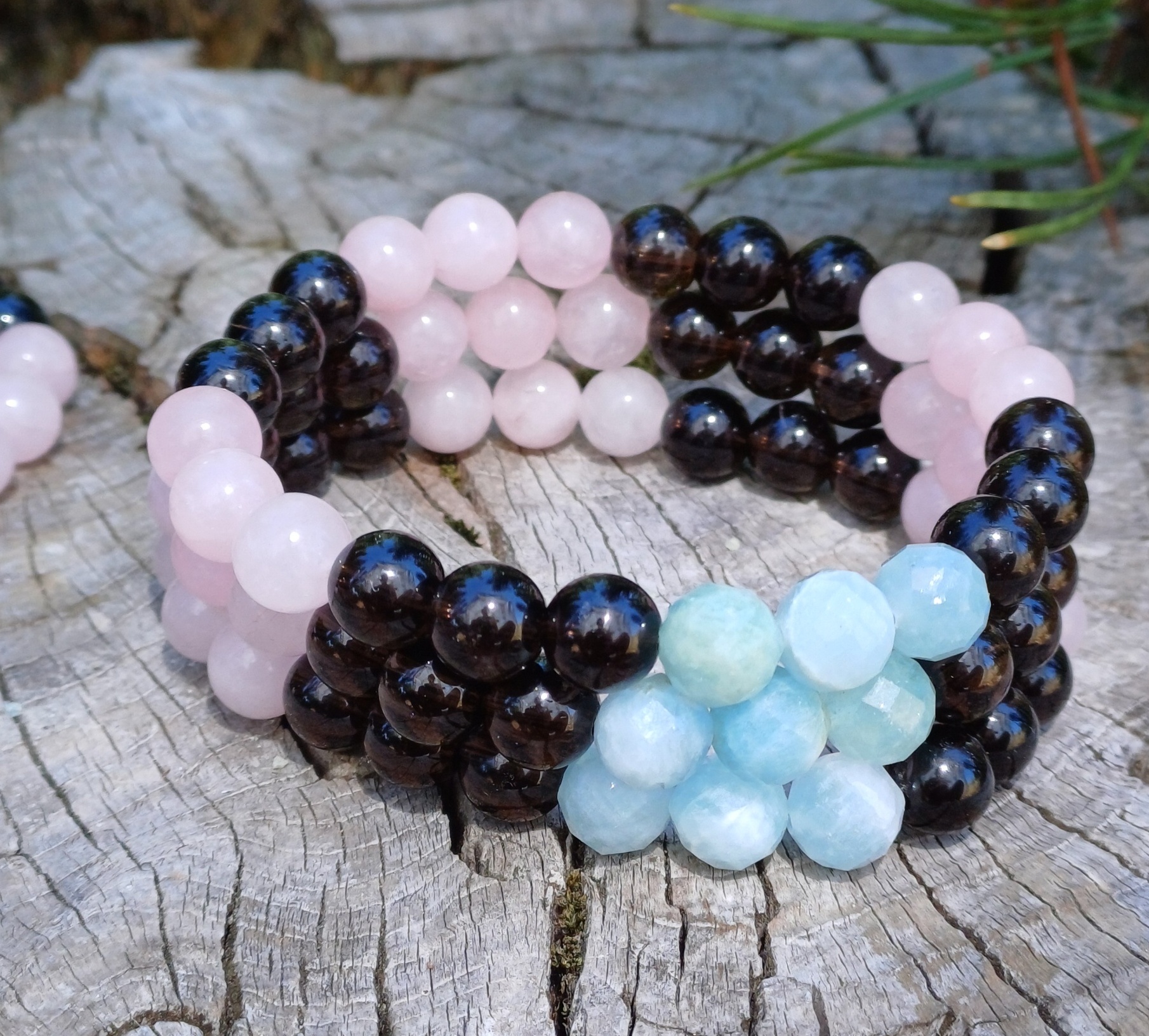 Záhněda, růženín, akvamarín náramek