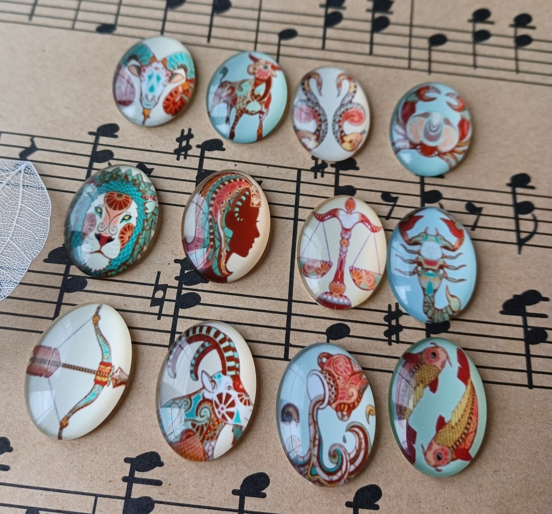 Dvanáct variant znamení zvěrokruhu. Vhodné jako dekorace na dárkové balení.