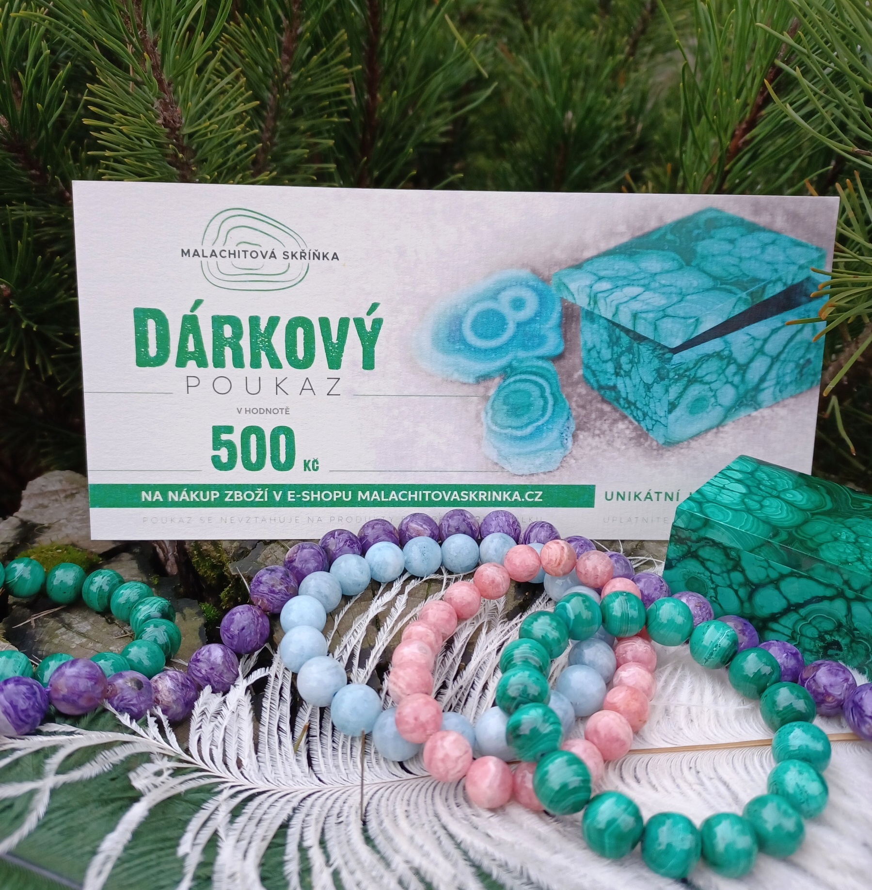 Chcete darovat šperk z drahých kamenů a nevíte přesně, jaký vybrat? Darujte dárkový poukaz na nákup v Malachitové skříňce. Poukazy jsou vytištěny na strukturovaný papír a mají neomezenou platnost, můžete si být jisti, že obdarovaný si svůj dárek vybere ve chvíli, která jim bude nejvíce vyhovovat.