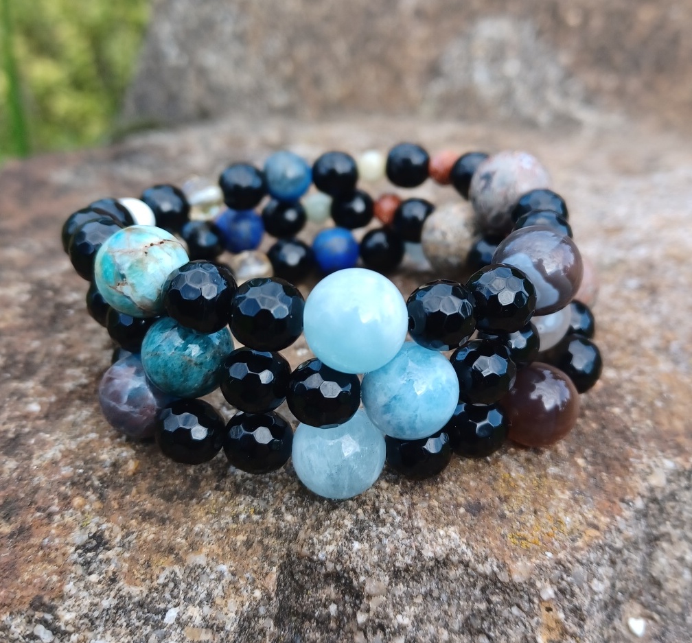 Náramek obsahuje tyto kameny: magnezit, citrín, lapis lazuli, akvamarín, avanturín zlatý, achát, páskovaný achát Botswana, akvamarín a apatit. Hlavním kamenem je onyx.