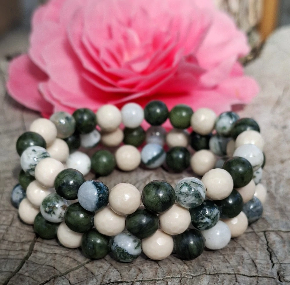 - Achát stromečkový, korál, chryzotil náramek