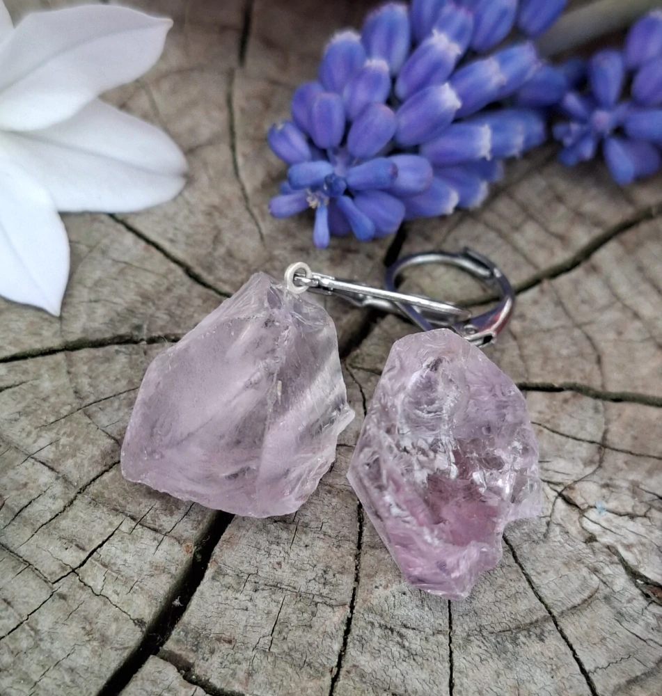- Náušnice ze surových kamenů