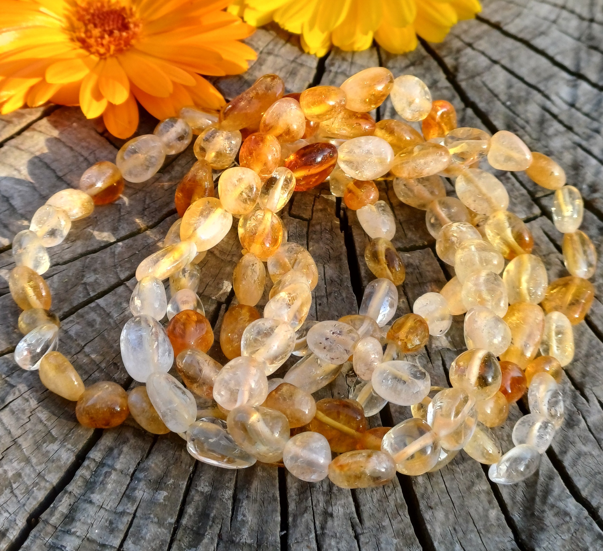 Obvod 18 cm, cena za 1 kus. Citrín je tepleně zpracovaný ametyst.
