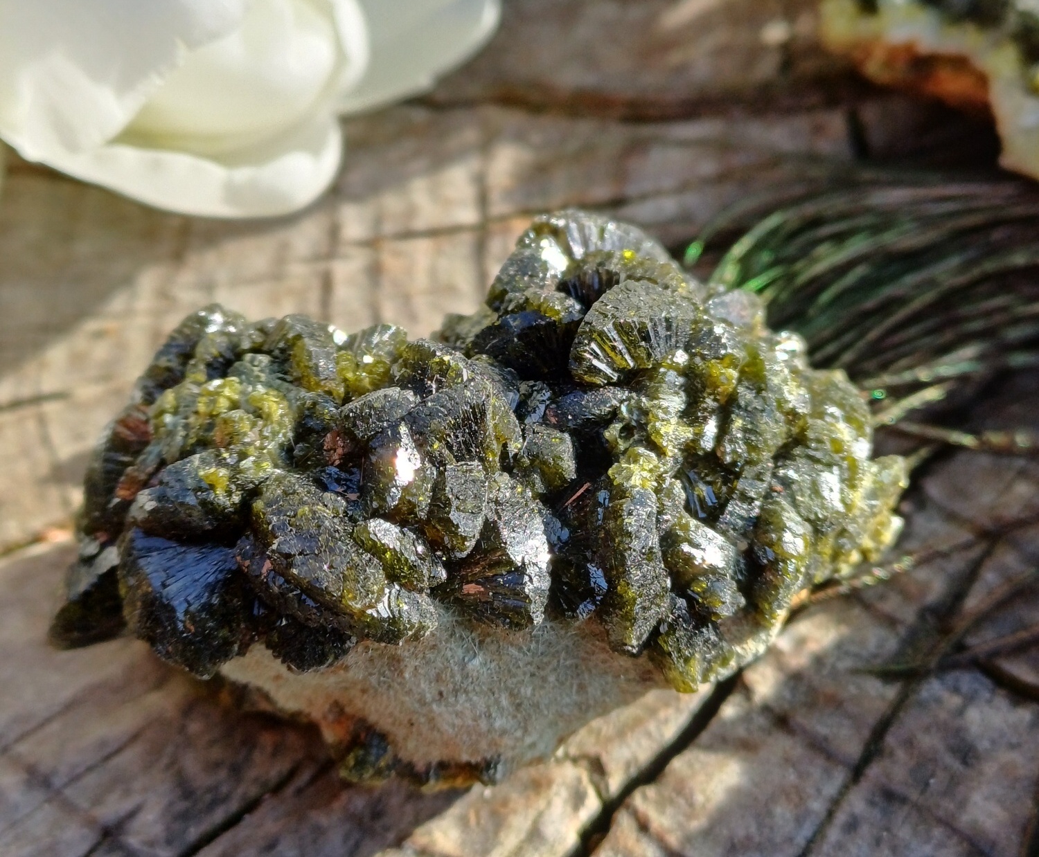 Epidot s vějířkovitými krystaly