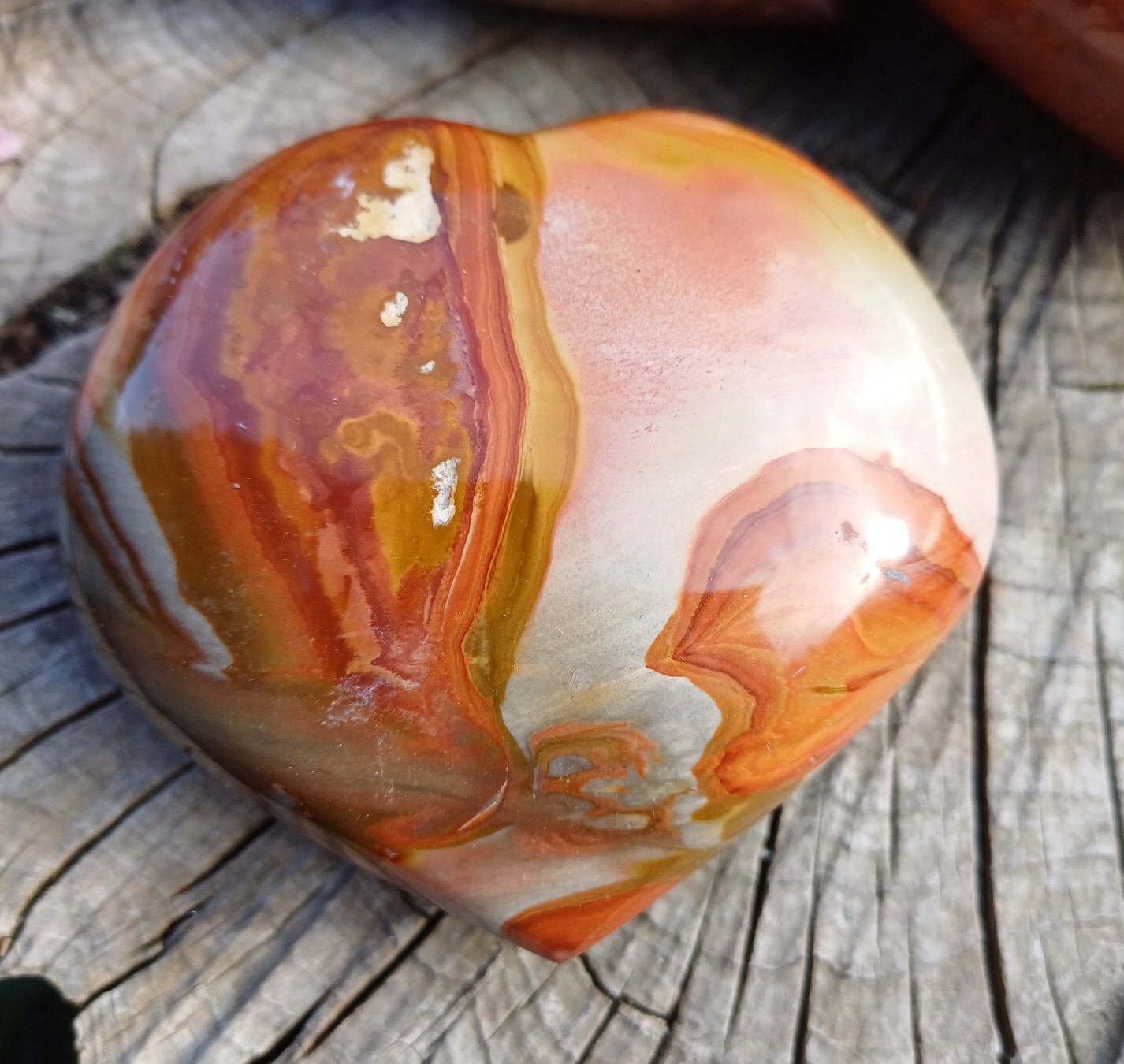 Dekorační kámen z polychromnícho jaspisu ve tvaru srdce.