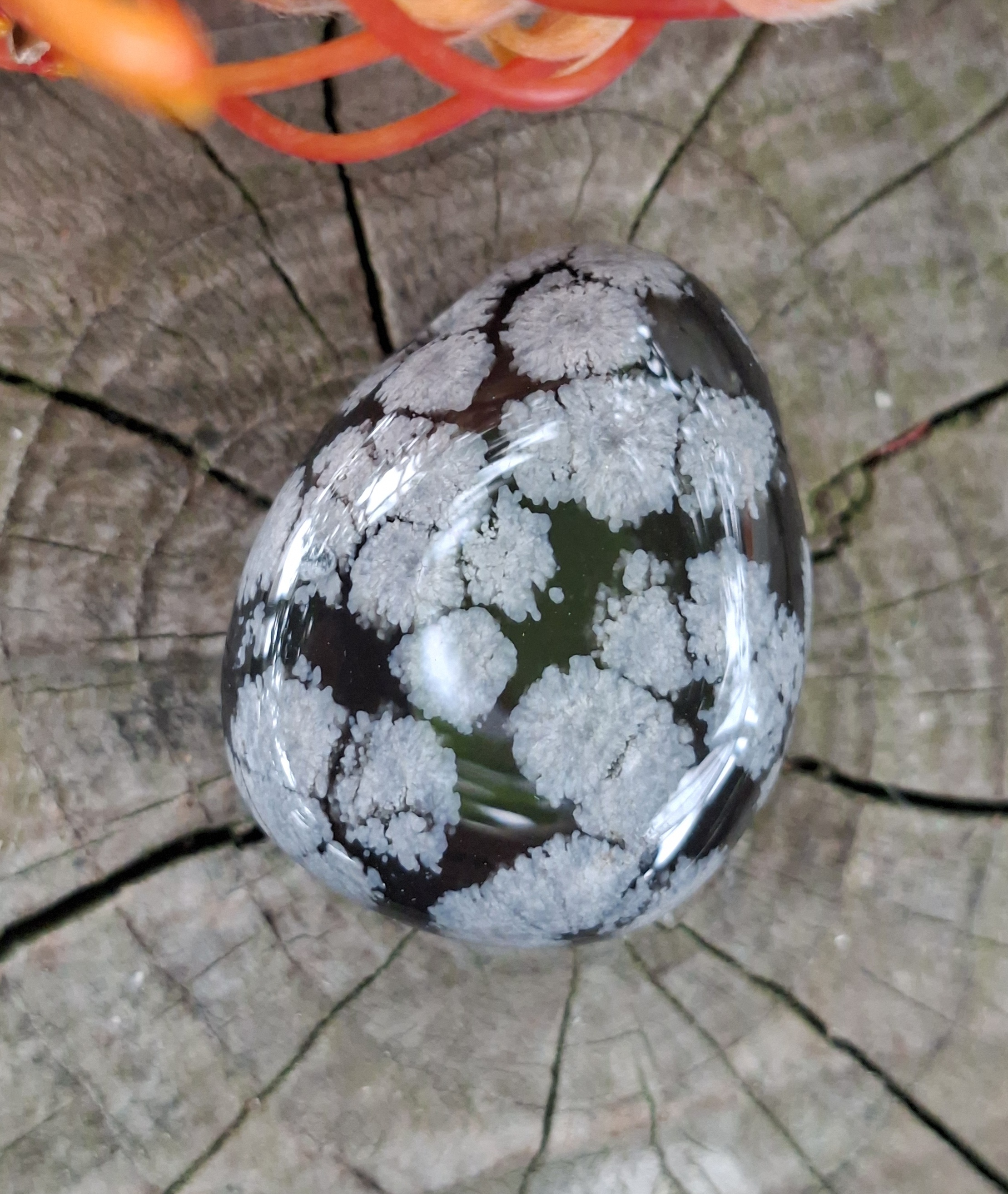 - Obsidián sněhová vločka vrtaný valounek