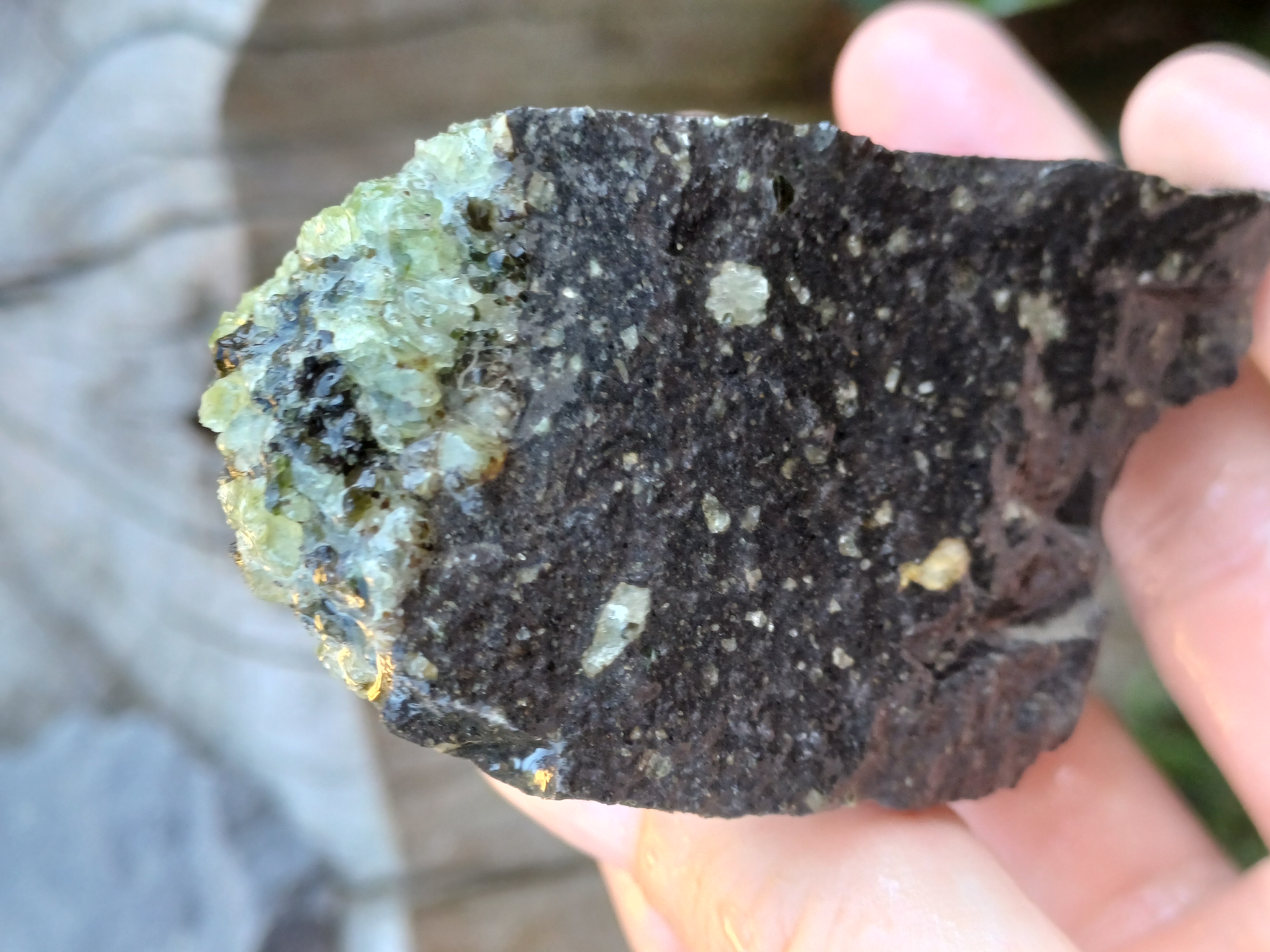 Nodule s olivíny, pyroxeny a chromspinely v bazaltu