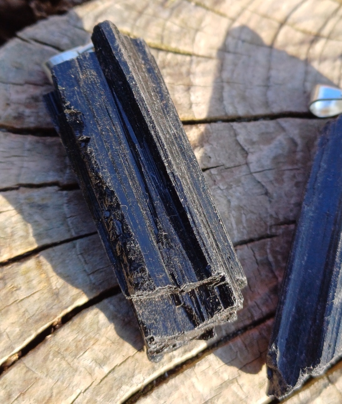 Přívěsek z krystalu černého turmalínu, stálobarevné bižuterní kovodíly bez obsahu alergenů.